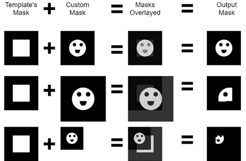 Each output pixel is the result of a logical AND operation between the template and custom masks’ pixels