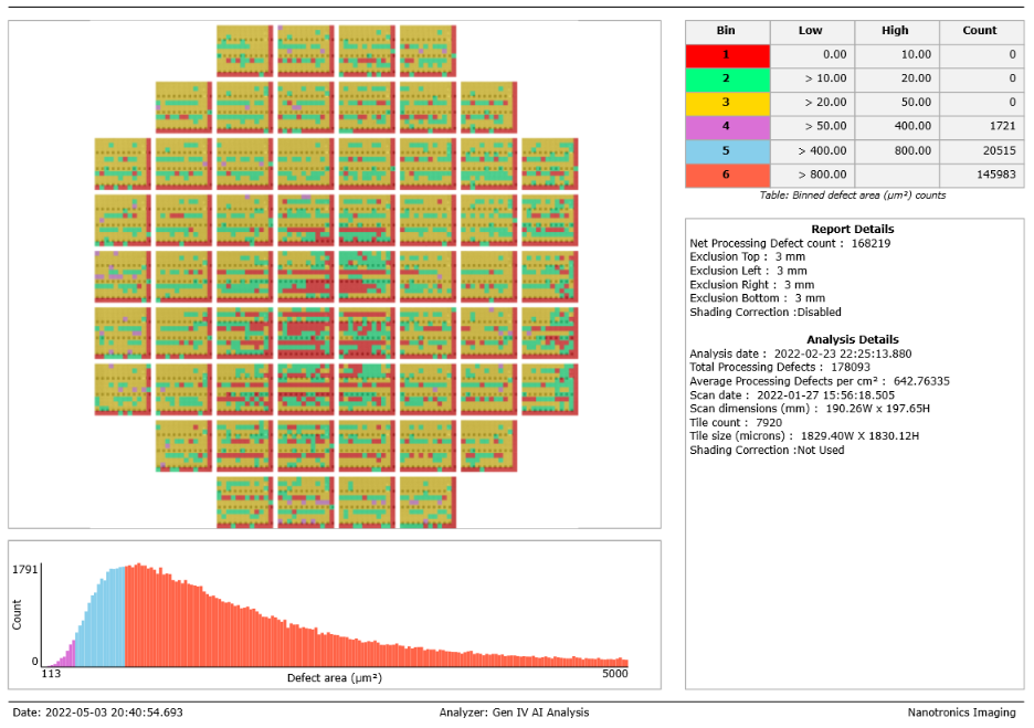 Histograms now render correctly across all report types in nView! This will help report viewers better understand the distribution of defect area across all defects in the report, which can in turn help users refine analysis parameters to hone in on critical defects.