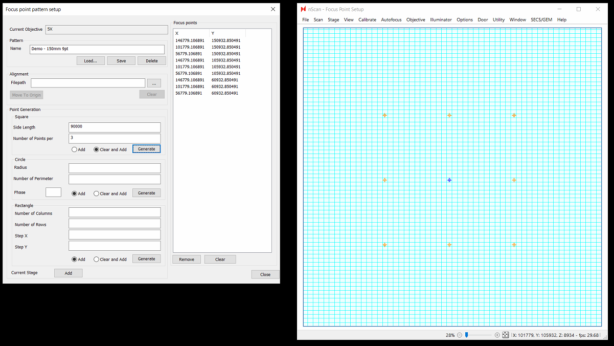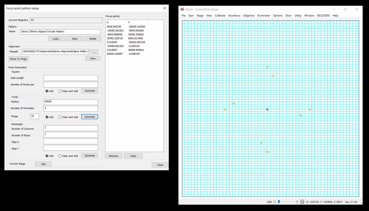 Using the newly available pattern creation options, almost any pattern you imagine can be created. Use responsibly! More focus points will come at the cost of throughput, so in general we still recommend starting with a square 9 point pattern paired with LI predictive focus interpolation. Let us know what patterns & predictive focus algorithm works best for your wafers, as this will help us further improve focus quality in future releases.