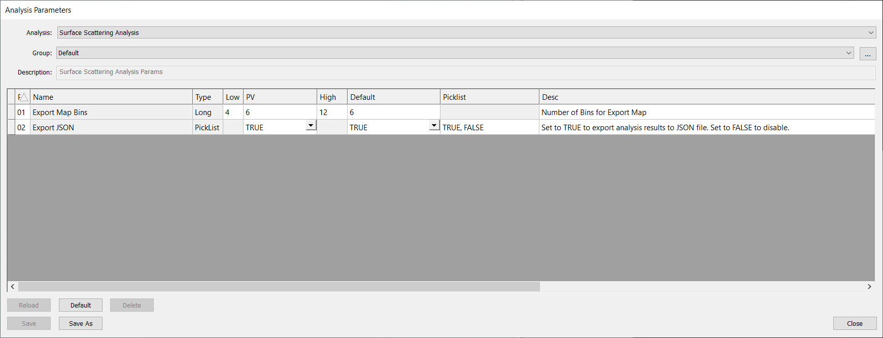 There are only two analysis parameters for Surface Scattering Analysis. For the most part, the two parameters don’t need to be touched.