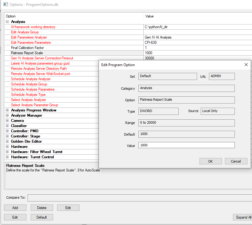 In addition to the existing autoscale mode, the flatness report scale can now be set to a fixed scale in the Program Options dialog, with the parameter value as the scale maximum in microns.