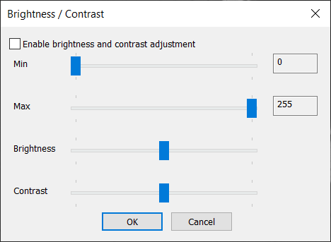 No update to the live view image will be shown though until the Enable brightness and contrast adjustment checkbox is enabled. Closing the dialog will disable this view, as will deselecting the checkbox.