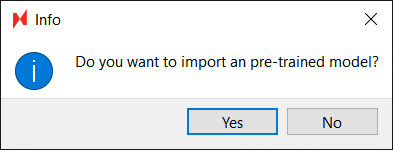 After choosing a model, a dialog will pop up asking “Do you want to import a pre-trained model?”. Click No. This allows the model to be trained from scratch.