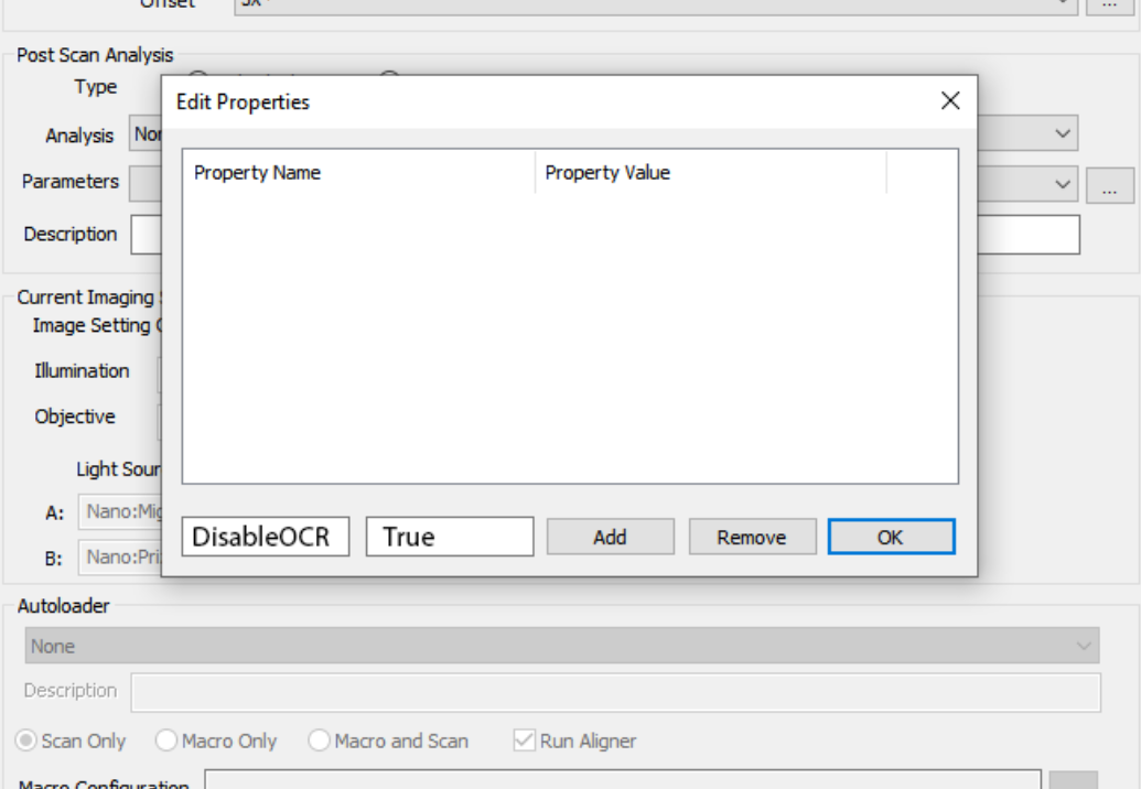 The job propretyDisableOCR can be enabled or disabled using the Edit Properties dialog found at Scan Settings > Job > Props. The sample naming and skip behavior listed in the above table is the same whether running a single or multi-job with autoloader.