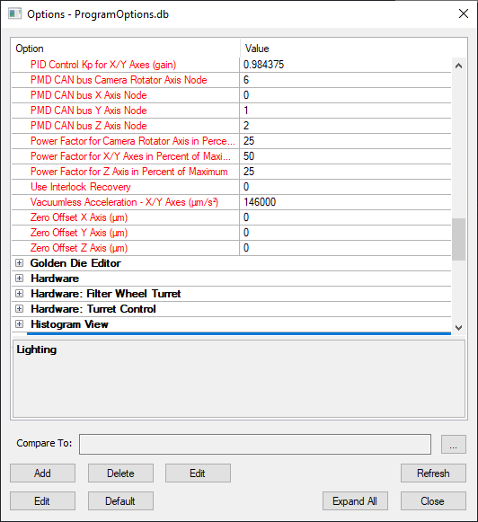 Three new program options have been introduced to aid in tool synchronization. Zero Offset X Axis (µm), Zero Offset Y Axis (µm), and Zero Offset Z Axis (µm) can be found in the Controller: Stage section Program options. In most use cases, tools only require the Z axis to be offset for synchronization, and the X and Y offsets can be kept at the default of 0.